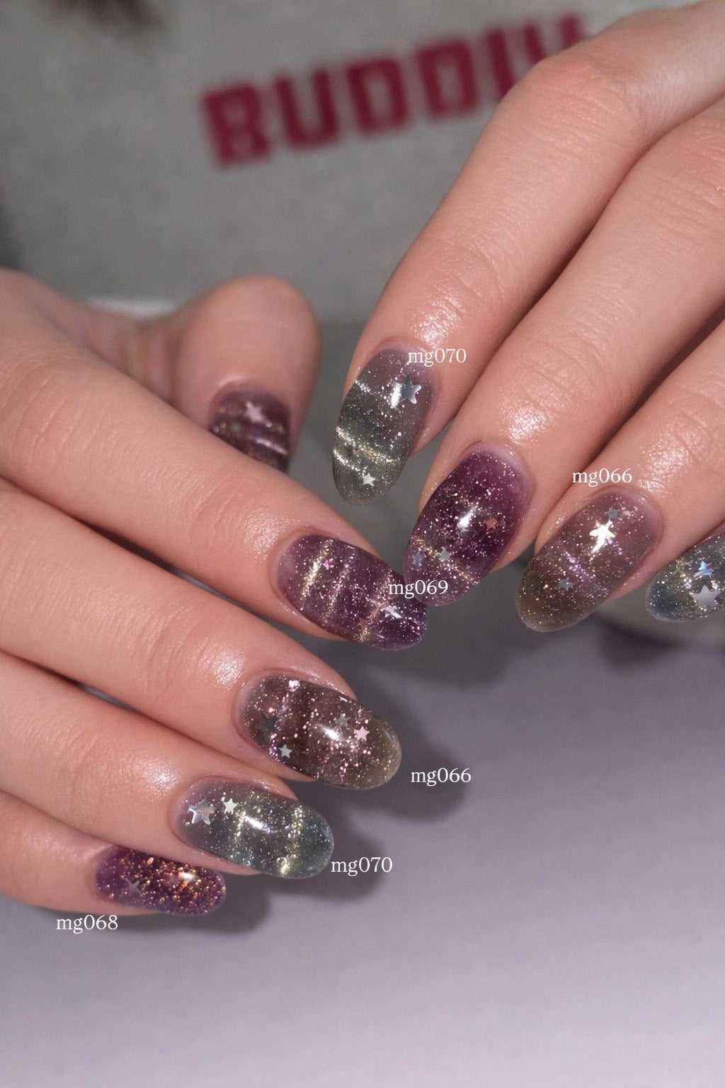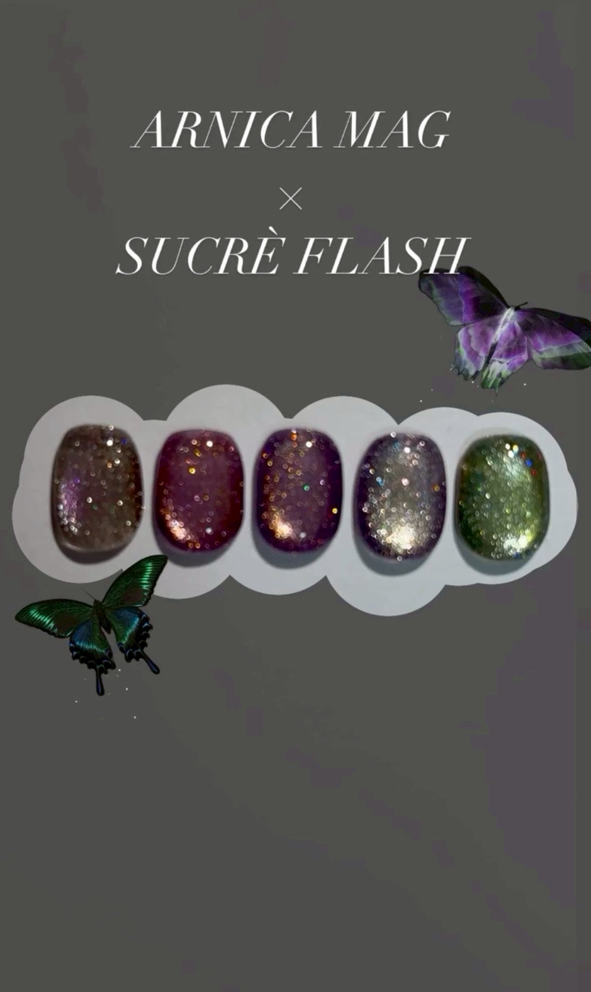 底に沈むような夜の色に星屑を散りばめたようなグリッター、そしてマグネットの光が安らぎとも不安ともとれる曖昧な「夢」の世界観を映し出すイミテーションカラー。