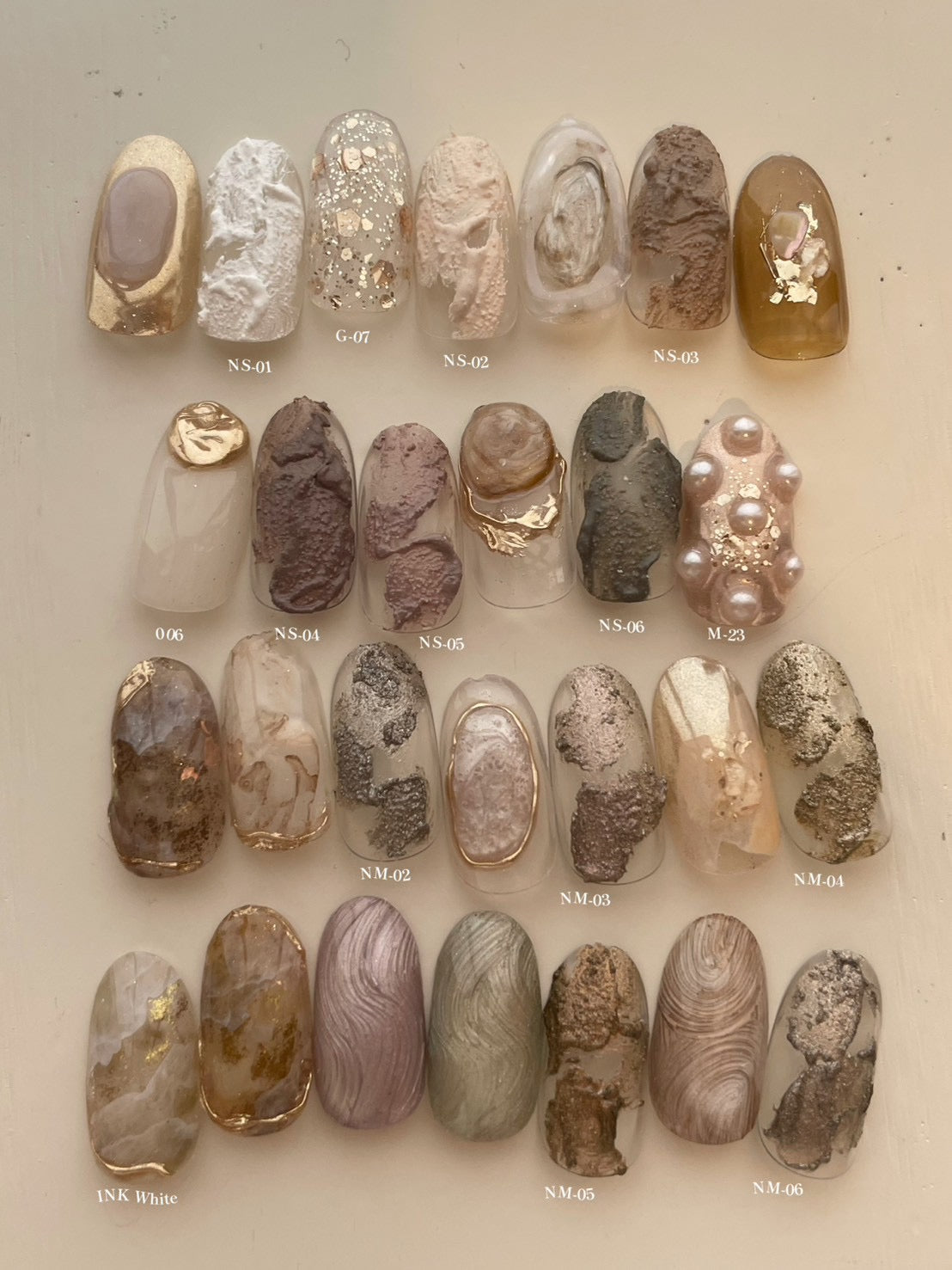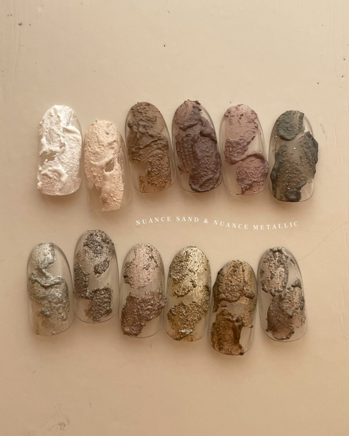 ニュアンスアートに最適な、表情豊かなテクスチャージェル。ぶつぶつとした質感がベースとなり、アートを重ねることで奥行きと立体感を演出します。